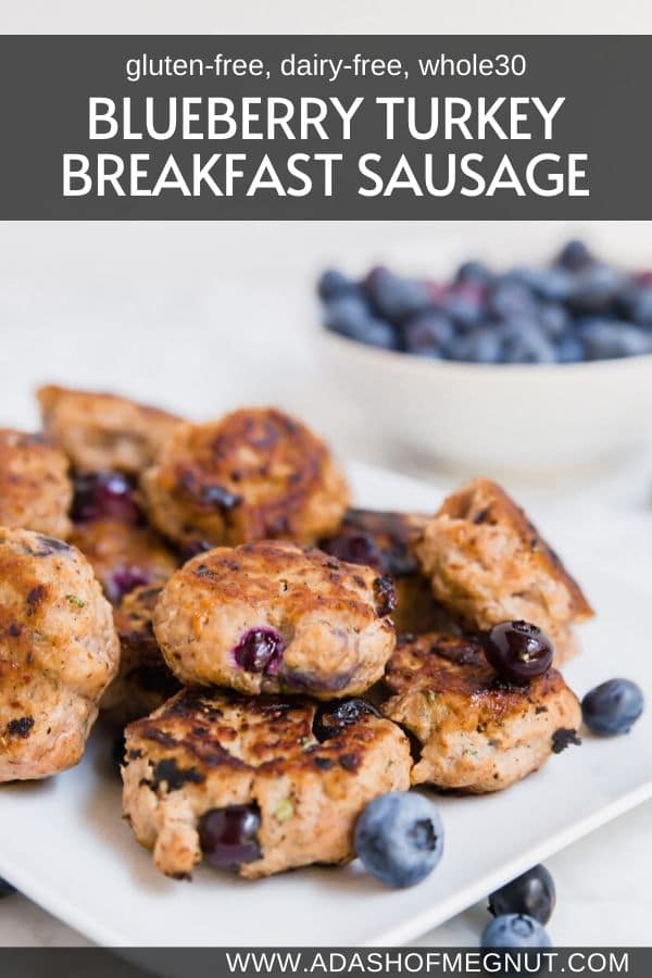 Breakfast sausage is taken to the next level with ground turkey, fresh blueberries and a touch of maple syrup. This blueberry turkey breakfast sausage is gluten-free, dairy-free and refined sugar-free! Perfect for easy weekday morning breakfasts!
