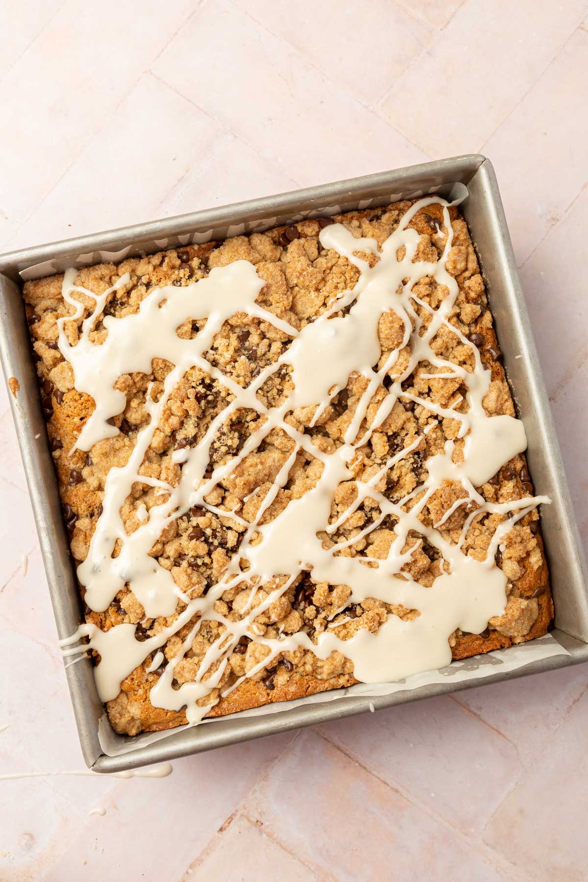 - Drizzle the glaze over the cooled coffee cake and allow it to set before serving.