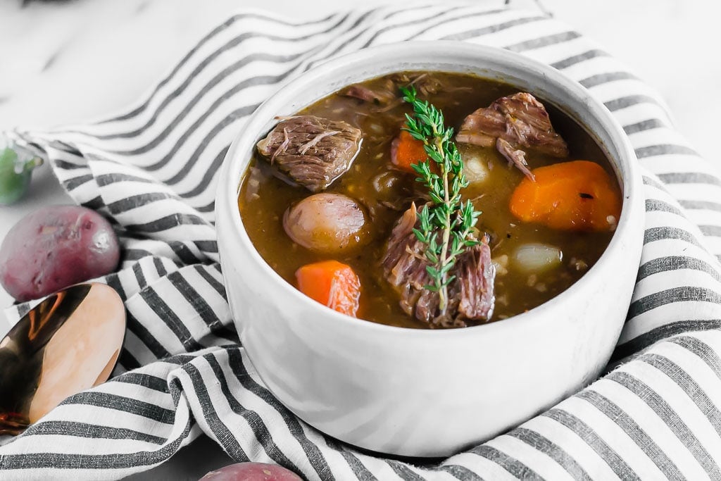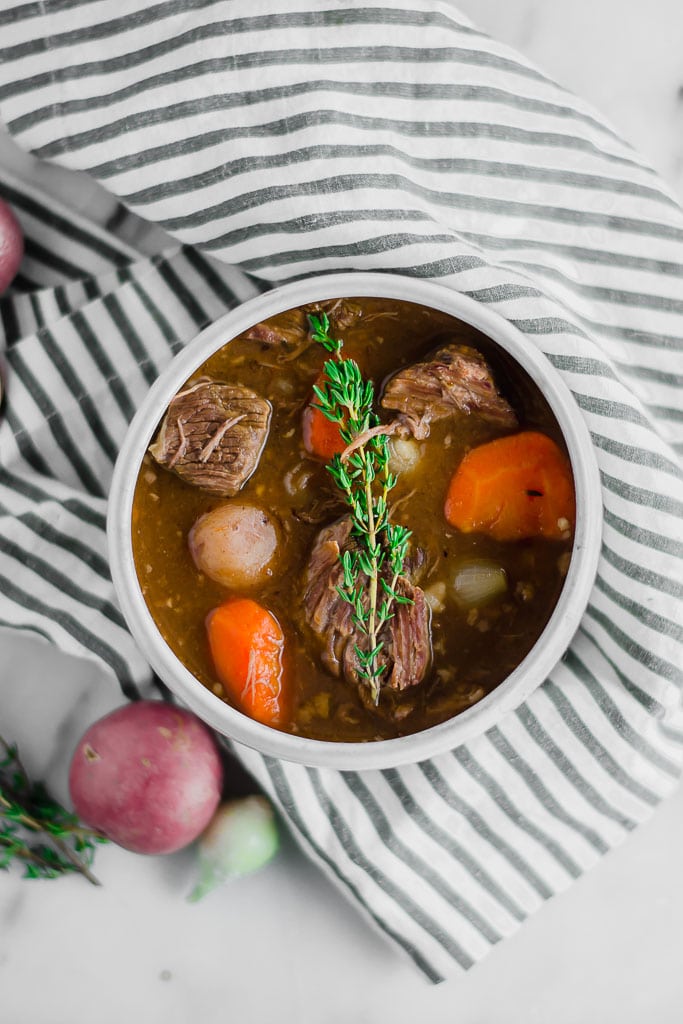 When the weather gets cooler, there’s nothing better than to be cuddled up in a blanket on the couch with a big bowl of this Whole30 slow cooker beef stew. Normally, I feel like beef has the tendency to get tough, but this one is so different. It’s just tender and delightful in every way possible.